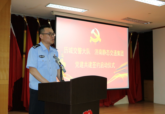市交警支隊黨委副書記、政委段富勇,市國資委黨委委員、副主任謝紅兵,歷城交警大隊黨總支書記、大隊長孫如彬,濟(jì)南靜態(tài)交通集團(tuán)黨委書記、董事長李培鋼等參加共建簽約揭牌儀式并講話。儀式由歷城交警大隊黨總支副書記、政委崔科軍主持。